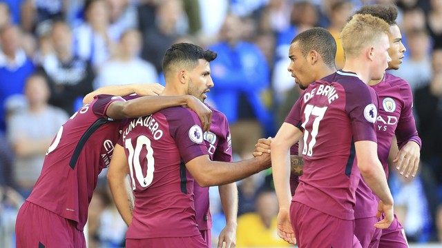 Após tenta pressão, os donos da casa começaram a sonhar mais alto, e a tentarem algo mais ambicioso, com muita confiança continuaram na pressão por alguns minutos. Mas confiança demais nem sempre é bom, e por conta de um descuido no meio-campo, De Bruyne roubou a bola dominada pelo Brighton, avançou e tocou para David Silva, que encontrou Aguero livre dentro da área, cara a cara com o goleiro Ryan, o argentino não perdoou e abriu o placar para o Manchester City aos 25 minutos do segundo tempo.